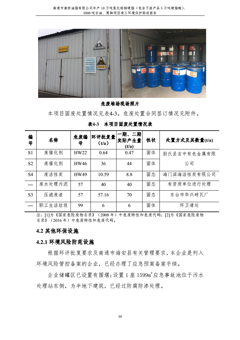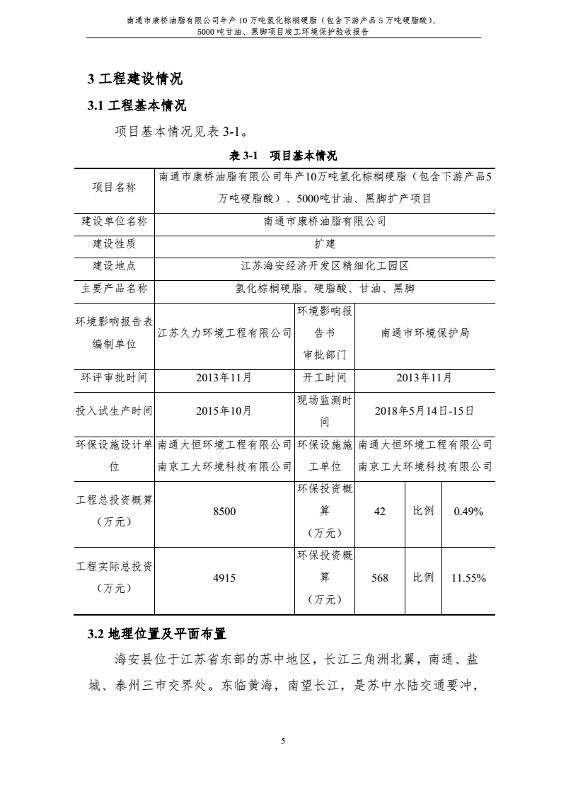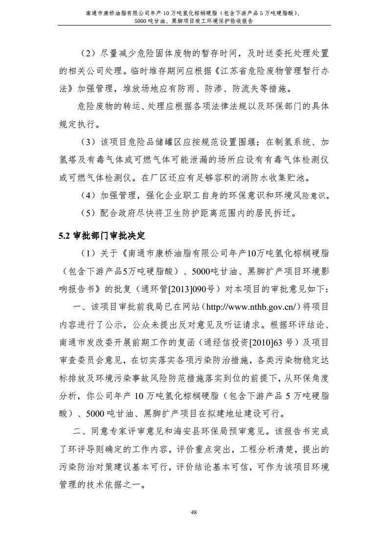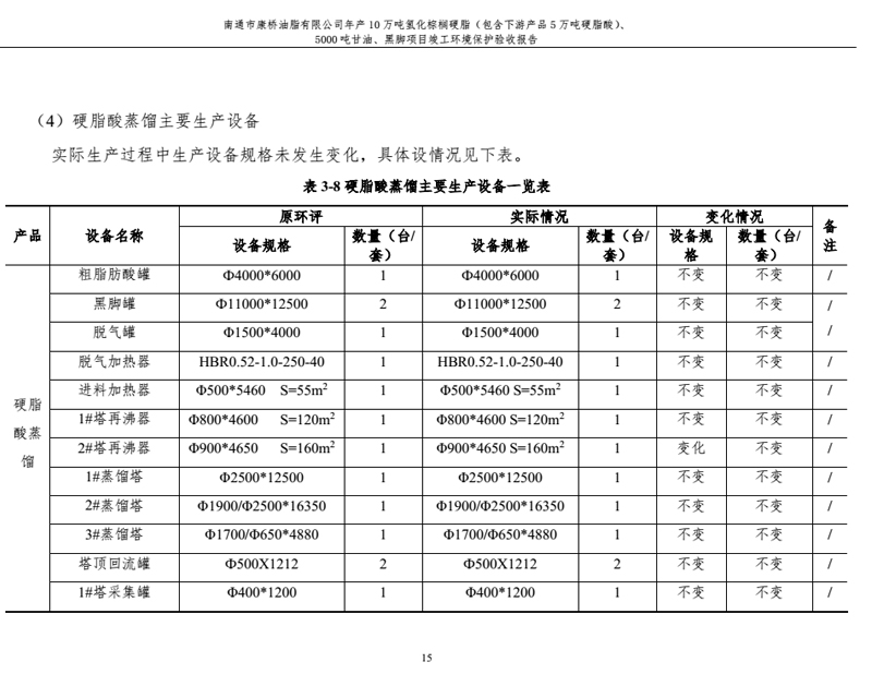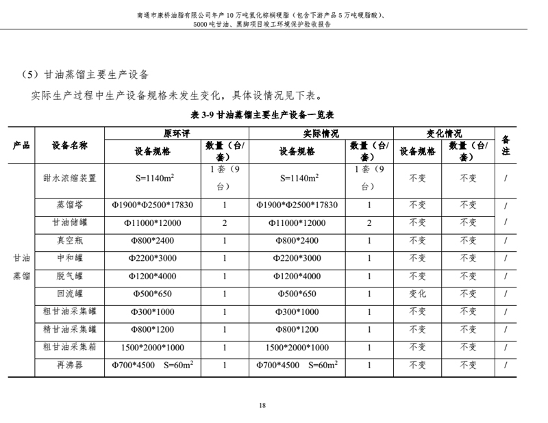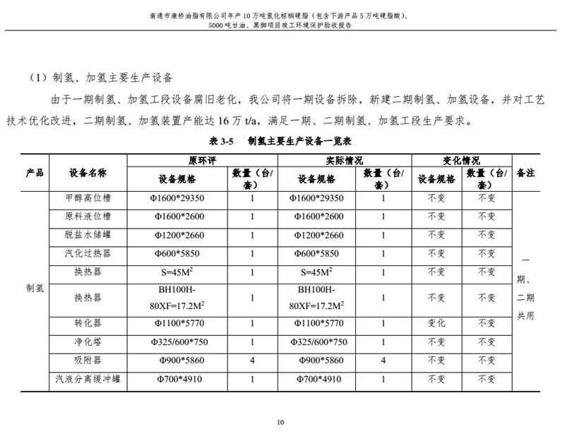 康橋油脂年產(chǎn)10萬噸氫化棕櫚硬脂、5000噸甘油、